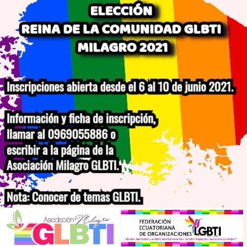 llamar al 0969055886 o escribir a la pagina de la Asociación Milagro GLBTI