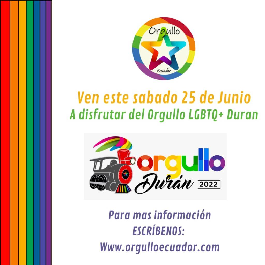 Ven este sabado 25 de junio a disfrutar del orgullo LGBT+ Durán, Para más información ESCRÍBENOS.